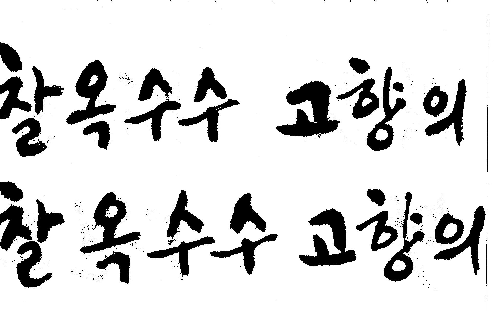 캘리고수님.. 캘리 부탁드립니다. 김철호 일반 1 10374 2008.10.31 15:44 > > 강원도 > 찰옥수수 > 고향의 맛 > > 이상의 문구 입니다. > 캘리 고수님들 시간되시면 도움 부탁드립니다.. > 유용하게 쓰시길 , 스캔이 깨끗하지 못해서 수고 좀 하셔야 겠네요.. "맛"이 라는 글자가 잘 않나와서 따로 올립니다.