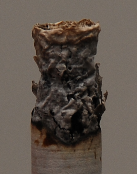 [불 붙이고 빨아들일 때, 그 무시무시하게 타들어가는 담배 앞부분의 모습.. (시뻘건 불이 잘 보이면 좋겠네요..)초접사 사진]
